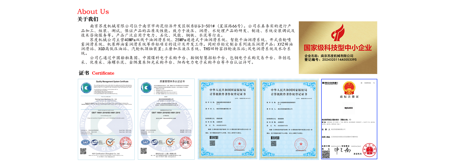 南京蘇度機(jī)械有限公司位于南京市雨花經(jīng)濟(jì)開發(fā)區(qū)聯(lián)東U谷3-502# (星濱路66號(hào))。得益于南京以及長三角地區(qū)的潤滑產(chǎn)業(yè)集群優(yōu)勢(shì)資源,公司求真務(wù)實(shí)的進(jìn)行產(chǎn)品加工、組裝、測(cè)試,保證產(chǎn)品的品質(zhì)及性能。致力于液壓、潤滑、水處理產(chǎn)品的研發(fā)、制造、系統(tǒng)安裝調(diào)試及技術(shù)咨詢服務(wù)等。產(chǎn)品廣泛應(yīng)用于電力、石化、風(fēng)能、鋼鐵、水泥等行業(yè),長期與國內(nèi)大型的重機(jī)企業(yè)及設(shè)計(jì)院合作,潤滑系統(tǒng)隨主機(jī)設(shè)備出口至東南亞、...